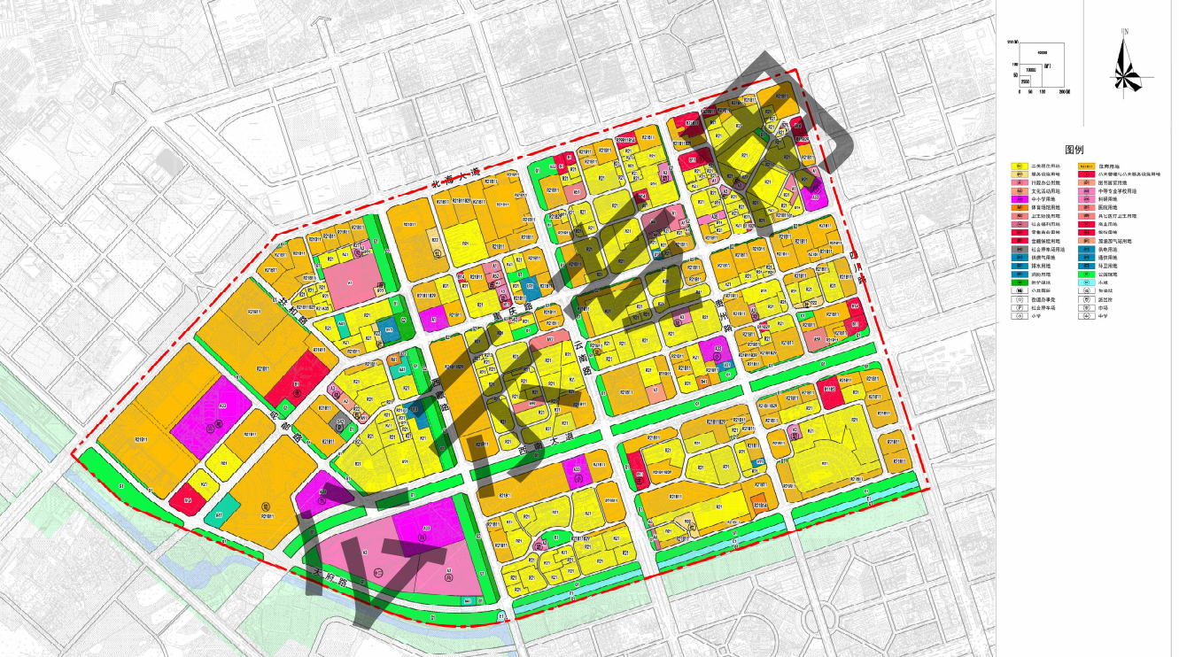 为合理配置城市用地资源,现将管理单元内用地类型规划为居住用地、零售商业用地、行政办公用地、体育用地、特殊用地、医院用地、公园绿地等用地。